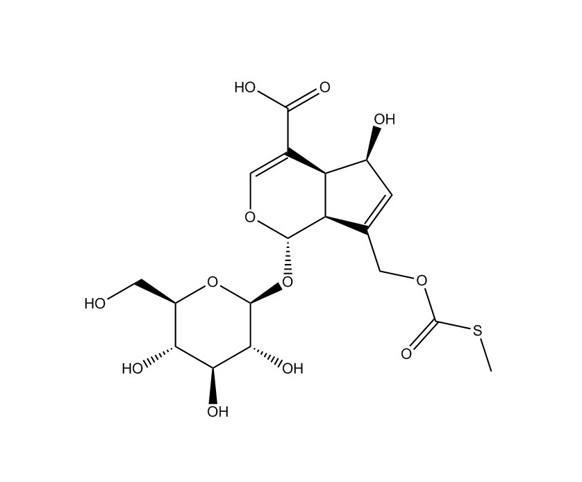 【英文別稱(chēng)】 (1S,4aS,5S,7aS)-1-(β-D-Glucopyranosyloxy)-5-hydroxy-7-({[(methyls ulfanyl)carbonyl]oxy}methyl)-1,4a,5,7a-tetrahydrocyclopenta[c]pyr an-4-carboxylic acid