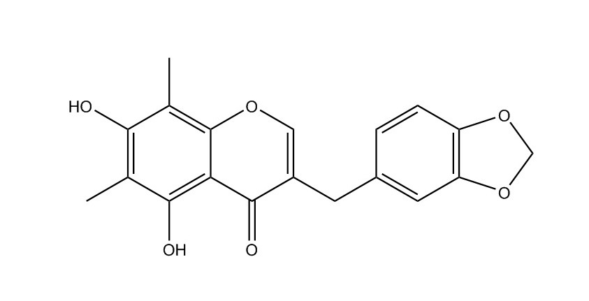 【英文別稱】 3-(1,3-Benzodioxol-5-ylmethyl)-5,7-dihydroxy-6,8-dimethyl-4H-1-benzopyran-4-one